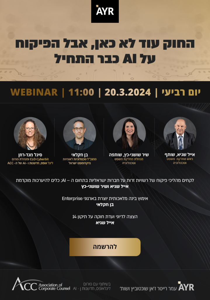 הוובינר בשיתוף עם פורום חדשנות, AI וליגלאופס של ה – ACC, בניהולה של עו"ד סיגל מגד-רוזן, יועמ"ש סייבר ביט.
