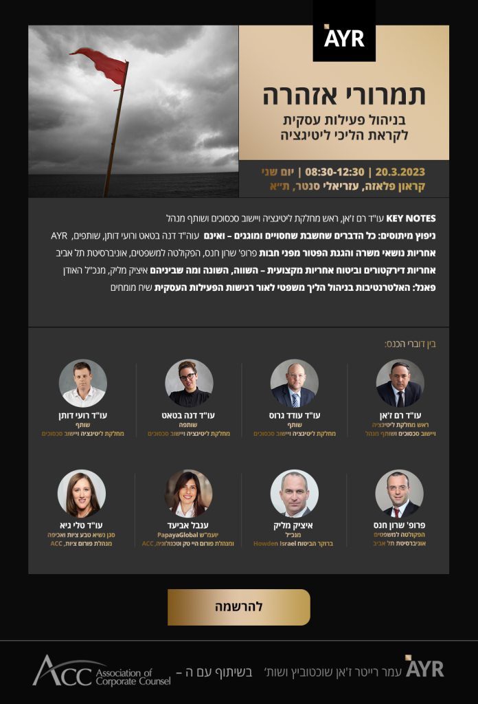 לפרטים נוספים: AYR.Conferences@ayr.co.il